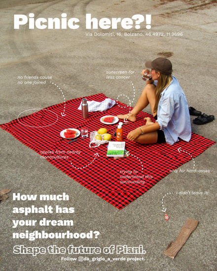 Premstallerhof was chosen as the location for this pilot project, as the place struggles with many difficulties but also has great potential. The main community facilities, such as the school, kindergarten, and church, are located nearby, bringing many people to the area. Right now, it is an area completely covered with asphalt. It doesn’t serve any function, is misused as a parking lot, and has only two benches with nothing else around.